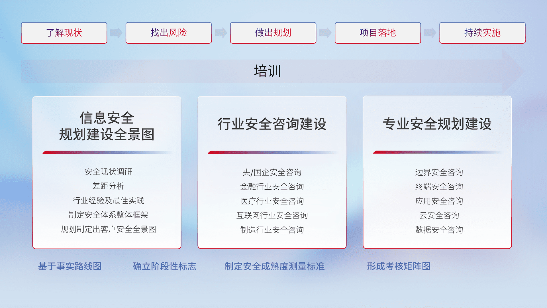 针对客户行业特性,,,,将宏观的安全战略和需求,,通过专业的交付服务,,实现项目落地,,,为客户提供标准规范的集成交付服务。。